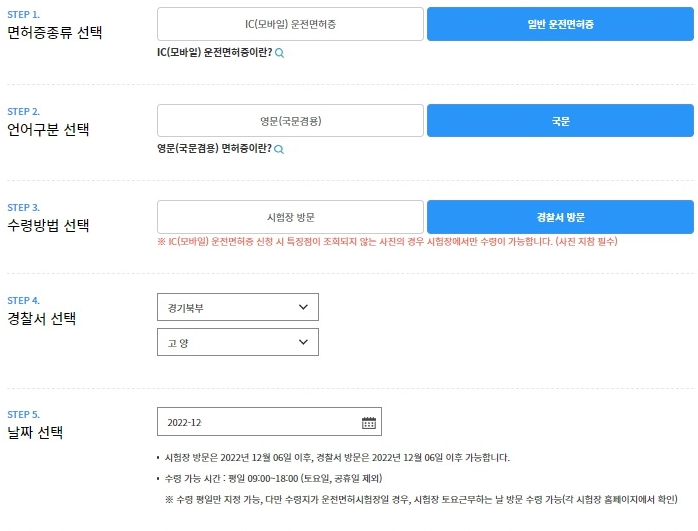 이렇게 모든 단계가 끝나면 새로운 운전면허증 수령을 위한 장소 선택사항이 나옵니다